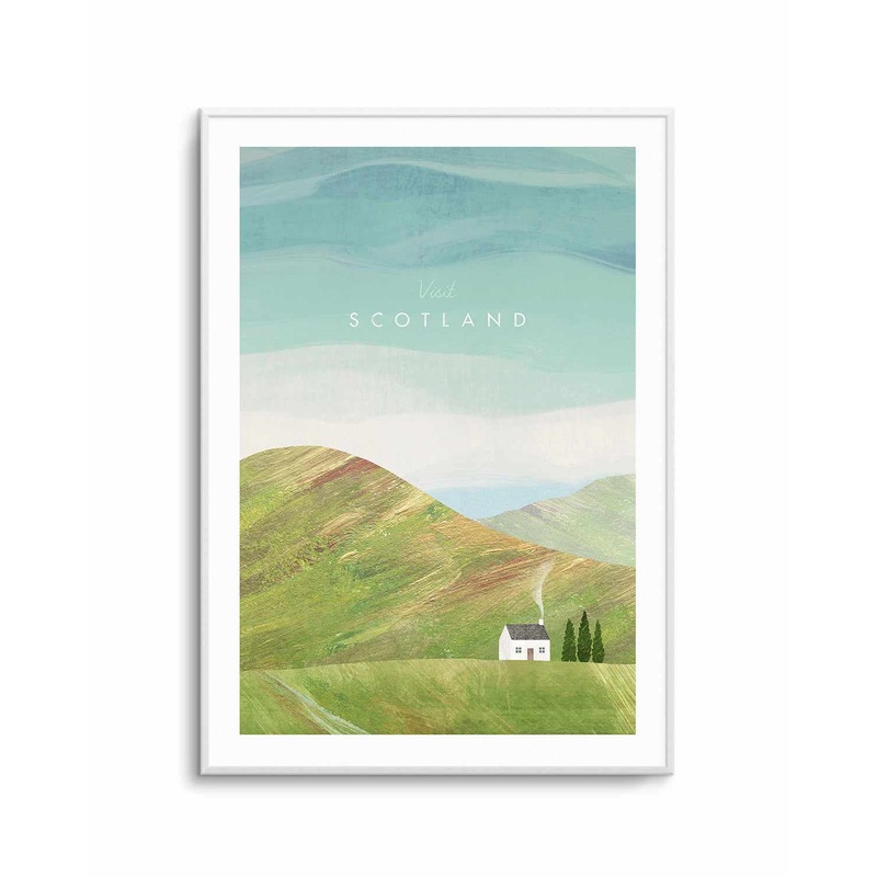 Enhance your home’s decor with ‘Scotland’ by Henry Rivers a wall art print featuring an illustration of the lush green hills of Scotland with a quaint white house. Perfect for enhancing your living room, bedroom, dining room, office, or creative space, this high quality travel poster artwork serves as a stunning focal point or complements an existing gallery wall. Whether you’re an art enthusiast or simply seeking to elevate your surroundings with beautiful art, this artwork is an ideal choice for any modern home.