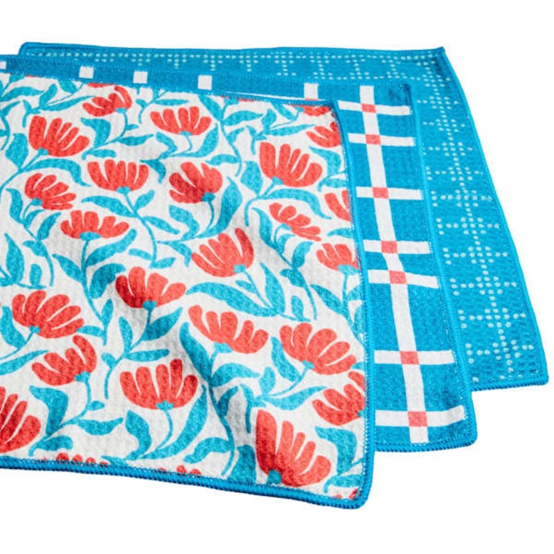 Tackle daily cleanup with this set of three blue waffle-weave dish cloths. Made from recycled materials, they are quick-drying and antimicrobial for a fresher, longer-lasting clean. Durable and absorbent, they’re an eco-friendly upgrade for the kitchen.