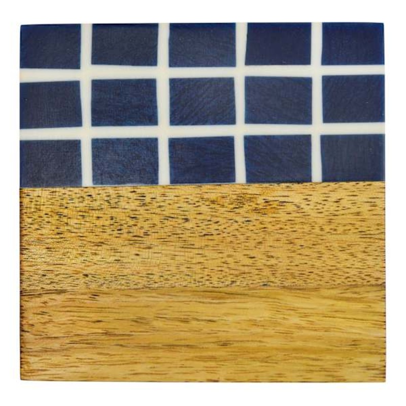 Set of 4 Blue & Natural Wood Coasters