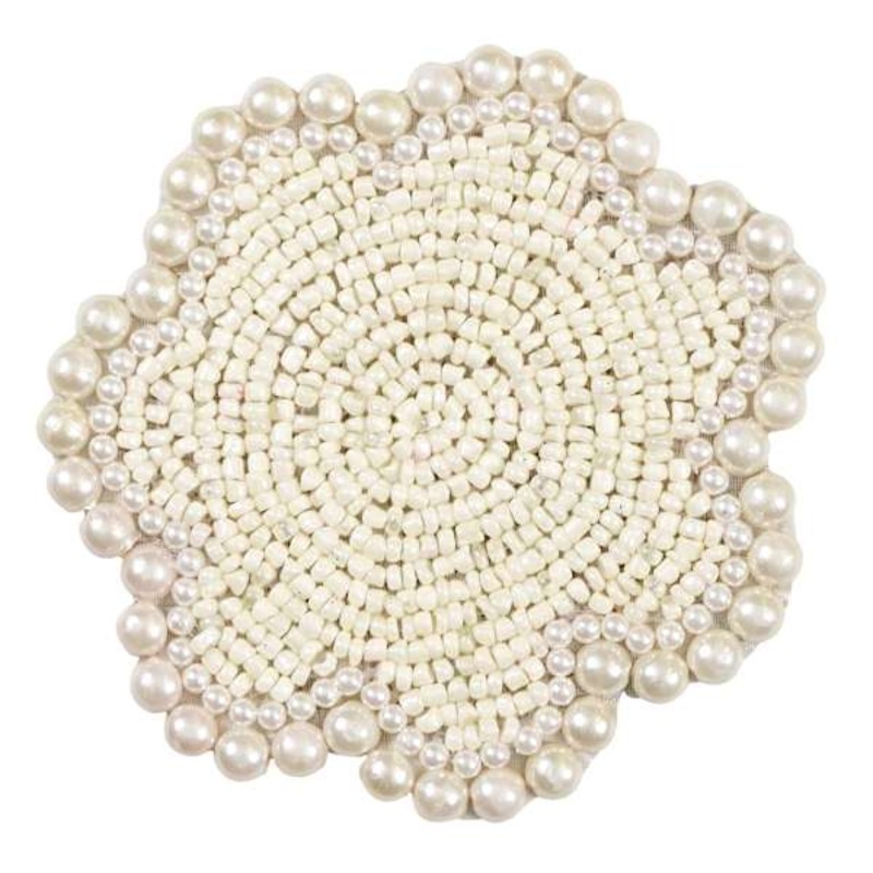 Set of 4 Ivory Flower Fully Beaded Coasters, 4″