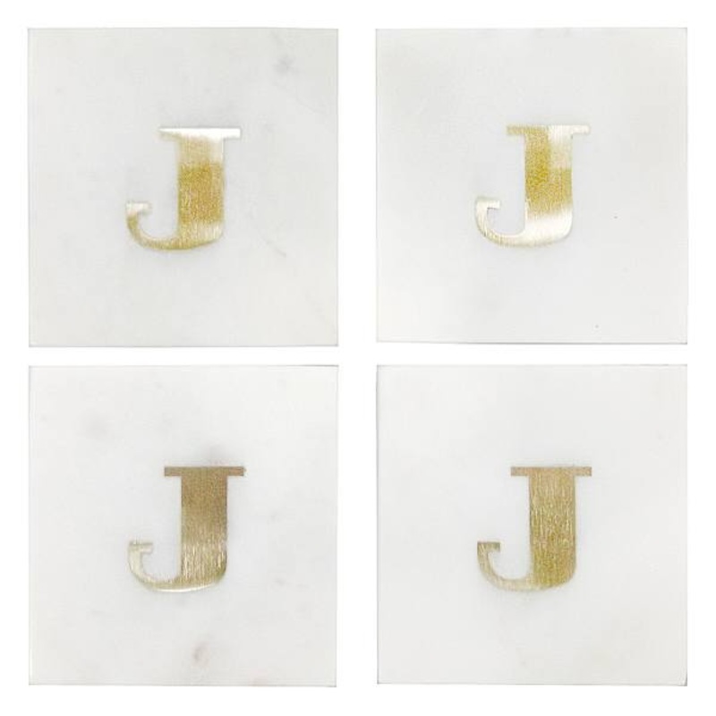 Set of 4 Marble & Brass Monogram Coasters, J