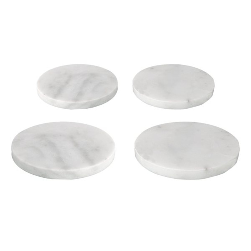 Protect your surfaces with style!Keep your tables and countertops looking neat and clean with this Set of 4 Round White Marbled Stoneware Coasters. Crafted in a classic design, these coasters will seamlessly complement any decor, adding a touch of sophistication to your home. Made of marble, they are designed to withstand everyday use, ensuring lasting performance.Not only do these coasters offer practical protection for your surfaces, but they also elevate your entertaining experience. Their marbled finish adds a chic and modern flair to your table setting, making them perfect for hosting gatherings or simply enjoying a relaxing evening at home.Set of 4 marbled stoneware coasters.Stylish and modern marbled finish.Keeps tables and countertops free from water rings and stains.Measures 4.0in. L x 0.5in. H x 4.0in. WCrafted from marble.Dimensions4.0″ L x4.0″ W x0.5″ H Weight3.6 lbs.ColorwhiteMaterialMarbleDepartmentHousewaresUPC191607847515Location ID49-08C