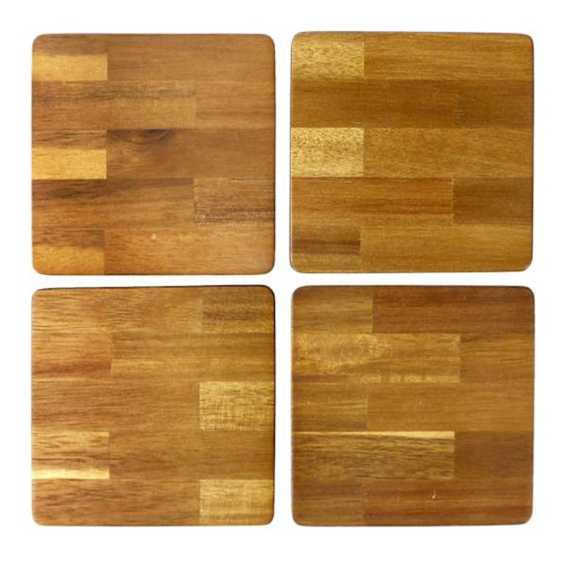 A stylish touch for your beverages. Add a touch of natural beauty to your table with this set of 4 Square Acacia Wood Coasters. Handcrafted with care, each coaster features a unique wood grain pattern, making them a one-of-a-kind addition to your home. Per