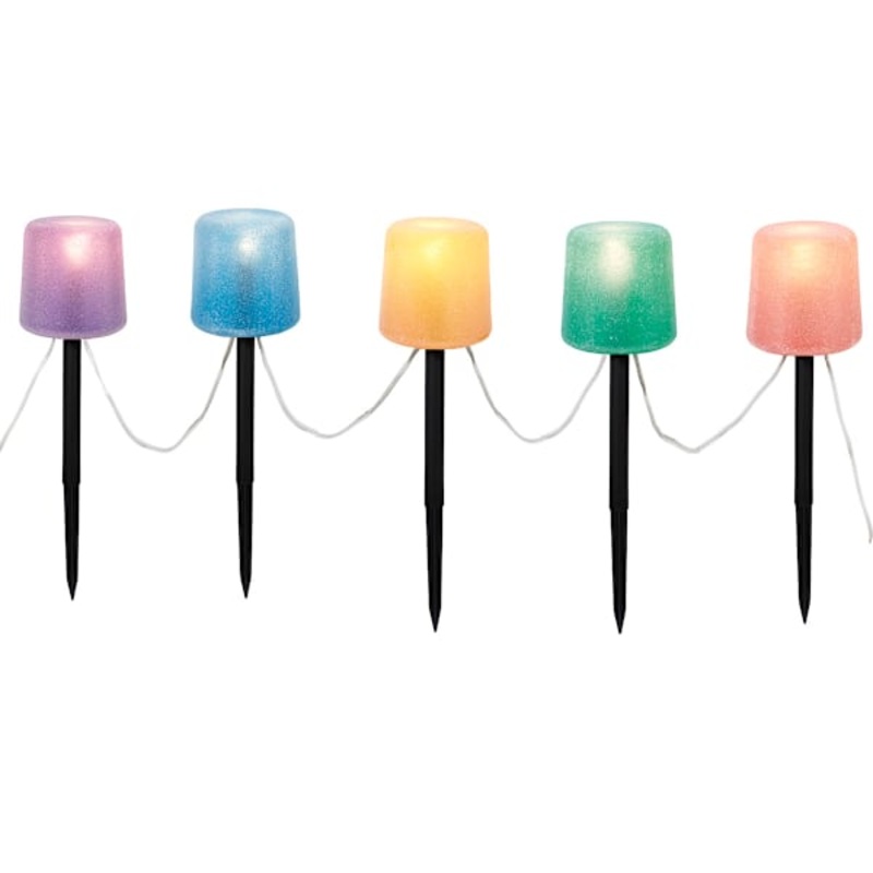 Light the way with this set of five pathway lights in vivid, multicolor hues. Each rounded, textured globe casts a playful, nostalgic glow that feels right at home for the season and beyond. Plug in incandescent bulbs deliver steady, warm illumination alon