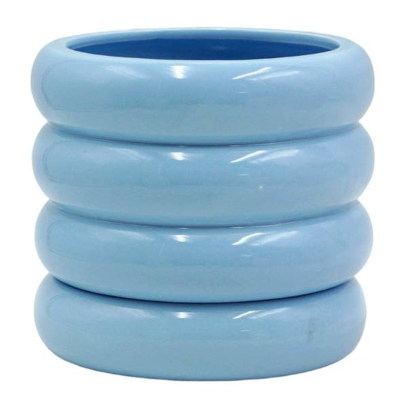 Add a touch of sophistication to your outdoor space.Highlight your green thumb and showcase your annuals and perennials at your front door or spice up the patio deck with our Sunny Club Indoor Blue Ceramic Planter.More than just a spot to display your gardening skills, this wonderful pot with puffy ring design offers a fun and versatile shape. Designed to live indoors, it’s ready to make your plants pop.Part of the Sunny club collection.Versatile size fits most plants.Painted in a soothing blue finish.Crafted from ceramic.Dimensions6.0″ L x6.0″ W x5.5″ H Weight1.5 lbs.ColorblueMaterialCeramicDepartmentPatioLocationOutdoor DcorUPC197154422014Location ID42-GL02D