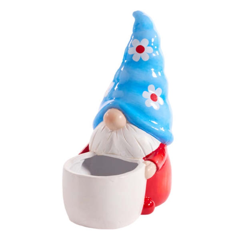 Turn your space into an oasis with this enchanting companion.Highlight your green thumb and showcase your annuals and perennials at your front door or lend a pop of festive foliage to the deck with our 10in. Sunny Club Indoor Blue Hat Gnome Planter. More than just a spot to display your gardening skills, this wonderful blue, red and white gnome-shaped pot offers a convenient display with its interesting shape. Designed to live indoors or in a covered outdoor space, it’s ready and waiting to make your plants pop.Part of the Sunny club collection.Features a vibrant color palette.Perfect for adding a pop of color to any space.Crafted from clay.Dimensions7.5″ L x4.8″ W x9.8″ H Weight4.0 lbs.ColormultiMaterialClayDepartmentPatioLocationOutdoor DcorUPC197154348505Location ID42-TG04B