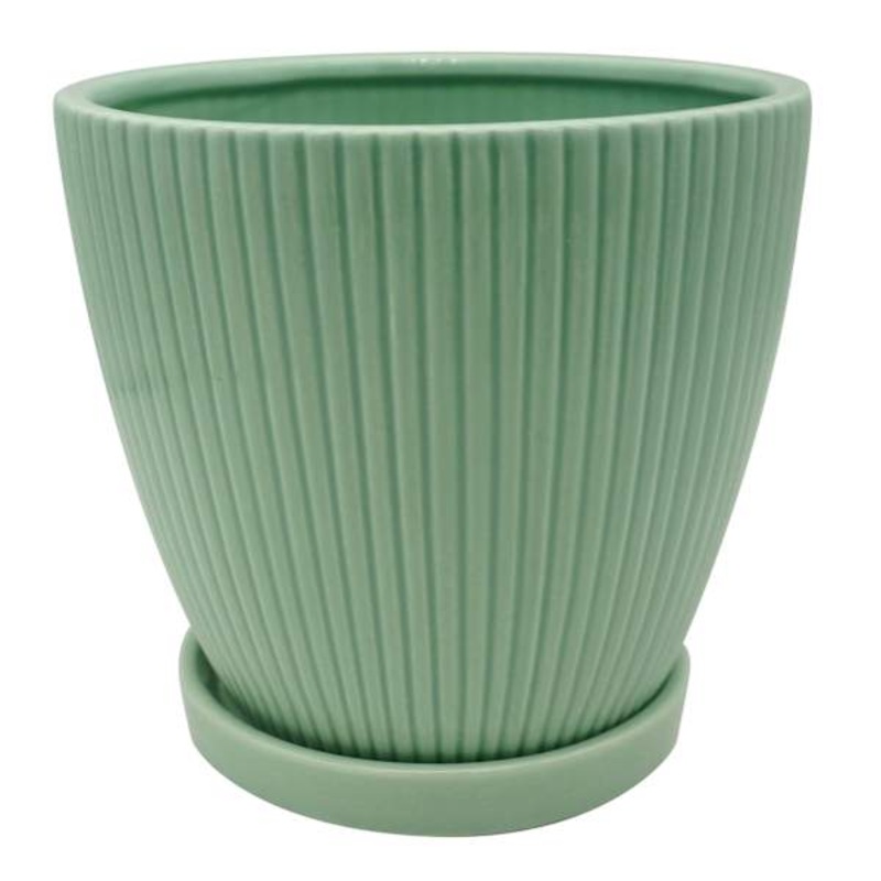 Highlight your green thumb and showcase your annuals and perennials at your front door or lend a pop of festive foliage to the deck with our 6in. Sunny Club Indoor Green Ribbed Planter. More than just a spot to display your gardening skills, this wonderful green ceramic pot offers a charming display with its unique flared shape and drip saucer. Designed to live indoors, it’s ready and waiting to make your plants pop.Features drainage hole.Painted in a vibrant green hue.Perfect addition any garden.Crafted from ceramic.Dimensions6.3″ L x6.3″ W x6.1″ H Weight1.3 lbs.ColorgreenMaterialCeramicDepartmentPatioLocationOutdoor DcorUPC197154347409Location ID42-TG04A