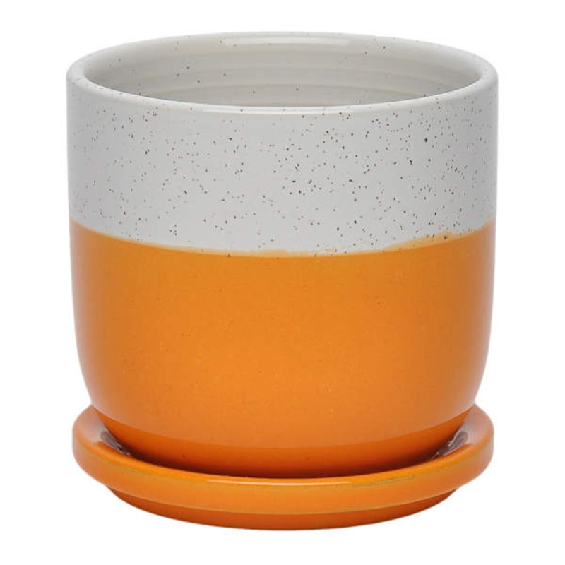 A bright and playful pot for your favorite plants.Enjoy a burst of color with the Sunny Club Indoor Ohio Orange Ceramic Pot. The vivid orange hue adds a cheerful touch to any space. Ideal for housing your favorite plants, this pot effortlessly combines sty