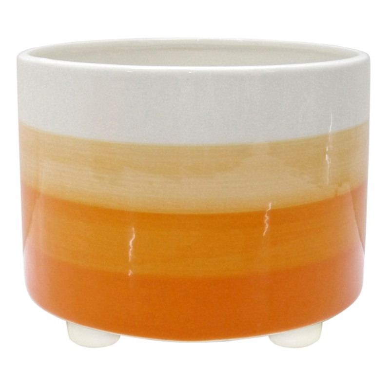 A burst of style for your beloved plants.Add a pop of sunshine to your indoor garden with our vibrant Orange Ombre Ceramic Planter. Its captivating ombre finish effortlessly blends cheerful yellow hues, creating a standout addition to any plant collection. Designed to brighten up your space, this planter is perfect for displaying your favorite leafy companions.Featuring a 10-inch diameter, our Orange Ombre Ceramic Planter offers ample room for your plants to thrive and grow. Its craftsmanship ensures durability while adding a touch of modern flair to your home decor. Whether you’re a seasoned plant enthusiast or just starting your green journey, this stylish footed planter is destined to become the centerpiece of your indoor oasis.Bright, ombre finish for a burst of orange.Perfect for showcasing your indoor plants in style.Stylish and durable addition to any home decor.8-inch diameter for ample planting space.Made of ceramic.Measures 7.9in. L 5.9in. W 5.5in. H.Dimensions7.8″ L x7.8″ W x5.9″ H Weight4.0 lbs.ColormultiMaterialCeramicDepartmentPatioLocationOutdoor DcorUPC197154135655Location ID42-GL02C