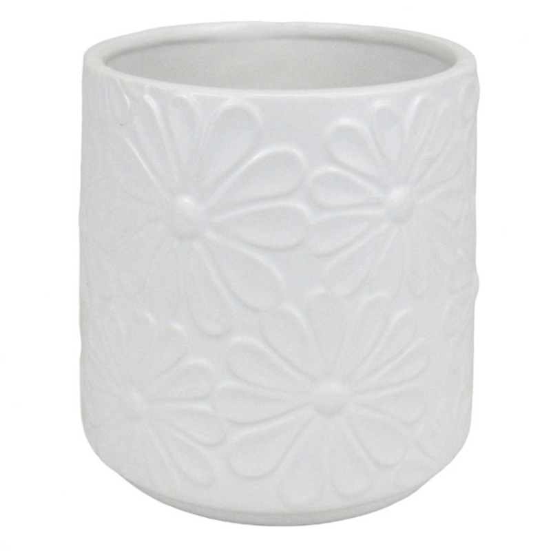 Highlight your green thumb and showcase your annuals and perennials at your front door or lend a pop of festive foliage to the deck with our 5in. Sunny Club Indoor White Ceramic Daisy Planter. More than just a spot to display your gardening skills, this wo