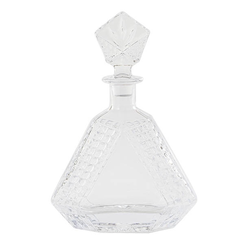 Present your finest whiskey in sophisticated style with our 22oz. textured triangle decanter. Crafted with a pyramid design and a glass stopper, this decanter provides a tasteful elegance that lends to the perfect pour of your favorite spirits-have a toast to premium taste with this wonderful decanter.Dimensions7.1″ L x3.1″ W x10.3″ H Weight3.8 lbs.MaterialGlassDepartmentHousewaresUPC197154230497Location ID49-13B