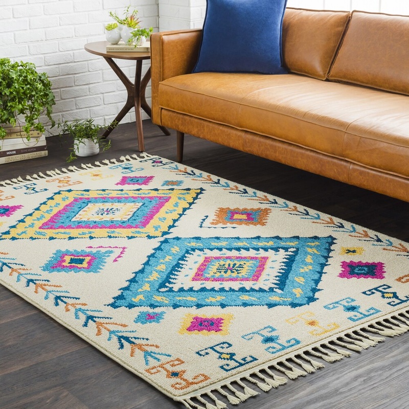 Update your home with this La Marelle area rug from The Curated Nomad. Made from polypropylene, the rectangular rug is machine-woven into a bold diamond medallion pattern with geometric detailing, rendered in off-white, yellow, pink, and blue colors. This trendy rug is sure to bring bohemian style to your space.