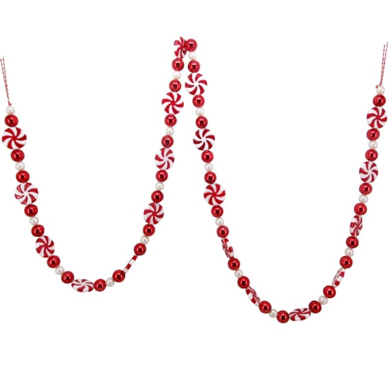 Bring playful holiday charm to your space with The Elf on the Shelf 6ft. Red and White Candy Garland. Glossy swirled shapes and smooth beads add crisp pattern and movement across your tree, mantel, or staircase. With a slim profile, it drapes effortlessly wherever you style it. Lightweight plastic keeps setup simple and storage easy. Layer multiple strands for bold impact or let a single strand add a cheerful finishing touch.