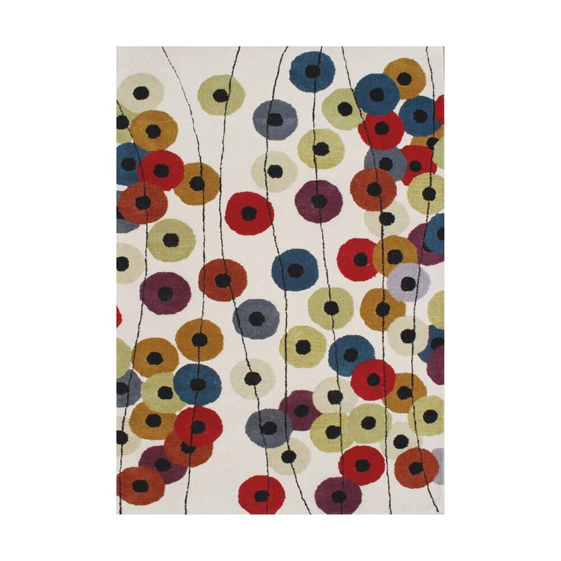 The Whimsical Colorful Alliyah Dotted Circles Lively Motif Yellow Wool Floor Rug – 6′ x 9′