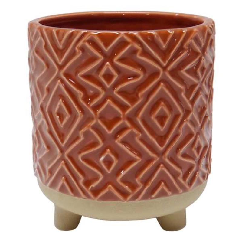 Discover the perfect blend of classic craftsmanship and contemporary design.Elevate your home decor with this versatile Rust Ceramic Pot from Tracey Boyd. Crafted with a modern twist, this medallion pattern footed pot seamlessly adapts to any space, capturing the essence of timeless elegance. Whether displayed on a shelf, windowsill, or as a stunning centerpiece, its versatile design effortlessly complements a variety of interior styles.With its simplistic yet eye-catching footed design, this pot adds a touch of sophistication to any room. Whether you use it to showcase your favorite botanicals, or as a vessel for storing small trinkets, its ceramic construction ensures durability and a touch of artisanal charm.Part of our Tracey Boyd Collection.Versatile design for any interior style.Footed pot adds an elegant touch to any space.Ideal for showcasing botanicals or storing small items.Made of ceramic.Measures 5in.Dimensions4.7″ L x4.7″ W x5.3″ H Weight1.2 lbs.ColorredMaterialCeramicDepartmentPatioLocationOutdoor DcorUPC197154135884Location ID42-GL02A