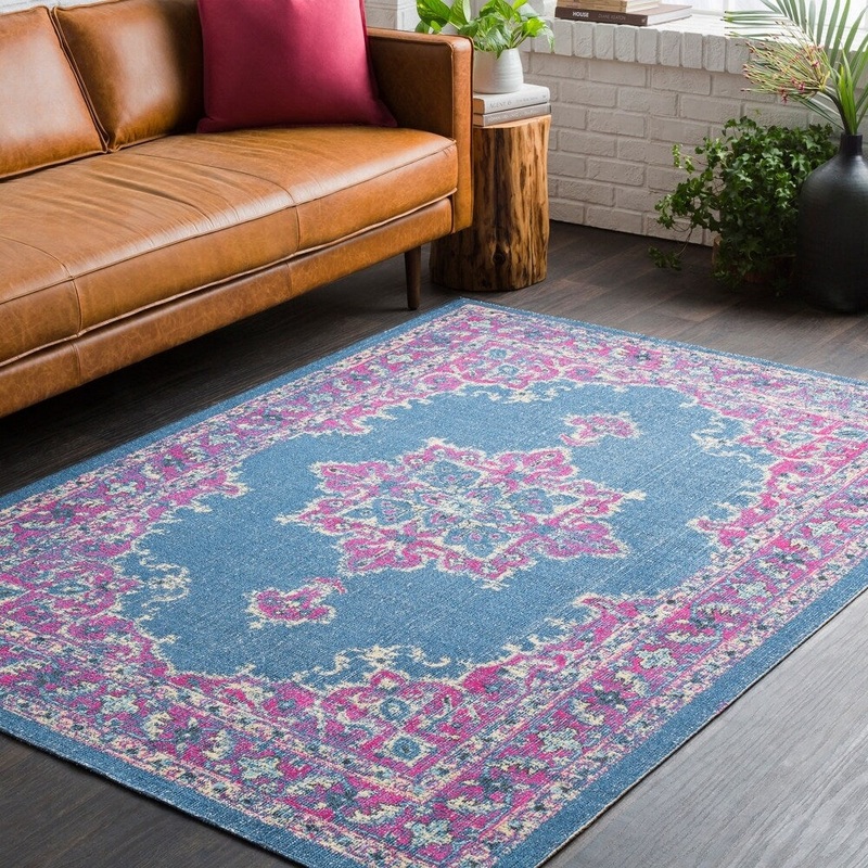 Traditional Persian Distressed Blue and PInk Area Rug – 5’3″ x 7’6″