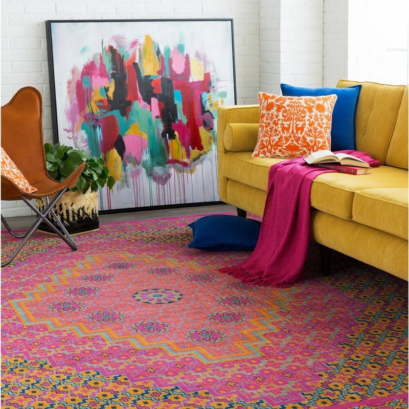 This unique Oriental inspired rug showcases a vibrant Boho pattern that is sure to catch your guest's eye. Featuring no pile, this rug is perfect for any high-traffic areas of your home with minimal to no shedding. Professionally or Spot clean only. Rug pa