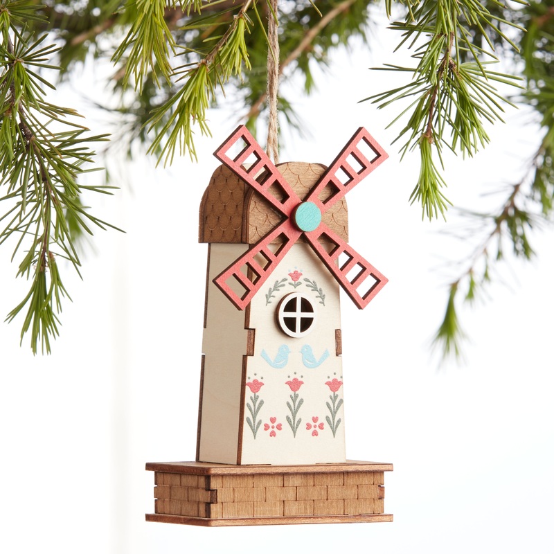 Lend a dash of Dutch style to your Christmas decor with our whimsical wooden windmill, adorned with folkloric floral designs. In natural wood tones accented in red, green and blue, this iconic ornament is full of bright, breezy beauty.
